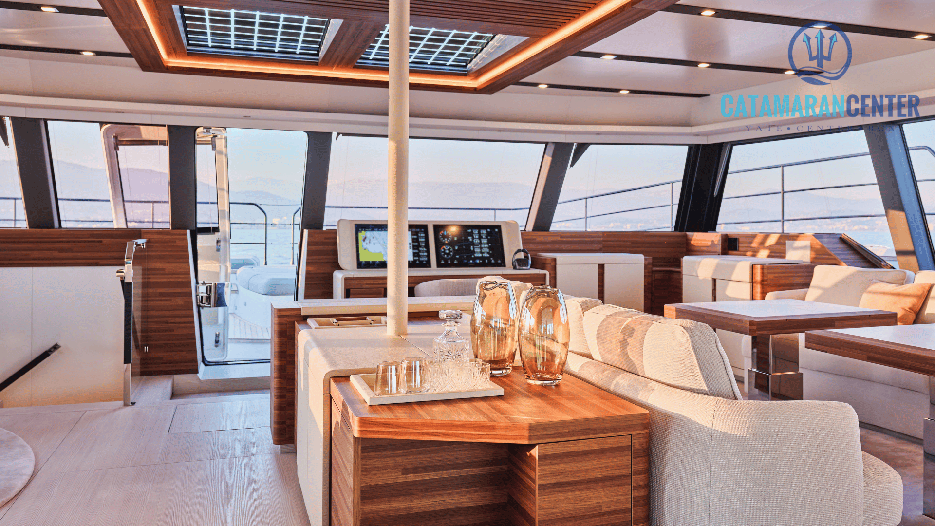 El diseño general del Power 80 prioriza la privacidad, la insonorización y el bienestar a bordo, incorporando soluciones técnicas avanzadas en climatización, ventilación y confort, pensadas para disfrutar del catamarán durante todo el año y en cualquier zona de navegación.