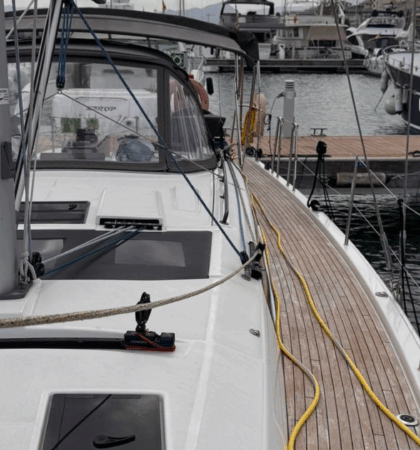 El Dufour 41 es uno de los modelos más equilibrados de su categoría gracias a su combinación entre diseño contemporáneo, habitabilidad interior, seguridad en navegación y facilidad de maniobra. Diseñado por el prestigioso astillero francés Dufour Yachts, este modelo destaca por sus líneas modernas, excelente aprovechamiento del espacio y gran rendimiento tanto en navegación costera como en travesías largas.